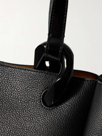 EDITORS'NOTES This tote iteration of JW Anderson's 'JWA Corner' bag features the same characterizations as the original but is scaled up to suit your daily needs. Minimal in design, it's crafted from textured-leather and has sleek top handles threaded with the signature chain link. The single-compartment, suede-lined interior is fitted with a slip pocket and has enough space for your essentials, a water bottle and a small tablet. SIZE & FIT This item’s measurements are: - Handle Drop: 22cm / 8.7in - Height: 33cm / 13in - Width: 28cm / 11in - Depth: 19cm / 7.5in DETAILS & CARE - Black textured-leather (Calf) - Two top handles - Internal slip pocket - Suede lining - Magnetic-fastening tab at open top - Comes with dust bag - Weighs approximately 2.9lbs/ 1.3kg