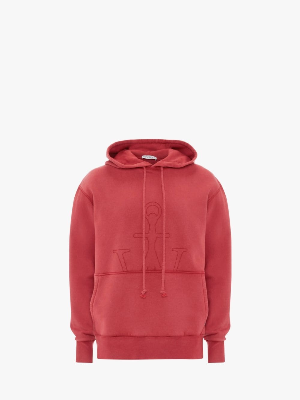 - Classic fit hoodie - Dropped shoulder - Tonal cord ties - Wash finish with contrast oversized anchor logo on front - Ribbed cuff and hem - Unisex style - fits true to size, take your normal size Details - Colour: Red - Composition: 100% Cotton - Medium weight - Soft brush finish - Natural stretch - Garment wash - Made in Portugal