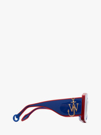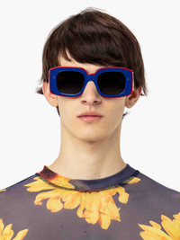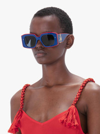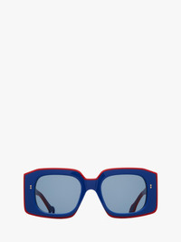 Bumper-frame Sunglasses, complete with abstract shaped lenses, and contrasting colour-blocked edging.- Solid blue colourway, with contrasting red edges - Large branded anchor in a gold-tone finish - Branded logo detail on inner temple - Temple Tips : Anchor Ring & Bill - Visible hinge detailing - Unisex Additional Information - Colour: Blue/Red - Composition - Main: 100% Mazzucchelli Acetate - Frame: Made in China - Lenses: Made in Germany - 100% UV Protection (Zeiss Certified)