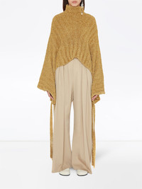kimono-sleeve knitted jumper Everyone loves a slouchy knit, especially when it comes in the form of this kimono-sleeve knitted jumper from JW Anderson. Designed with a metallic effect and hanging sleeve straps, this ribbed piece epitomises the term "golden hour". Highlights - Gold-tone - Metallic effect - Ribbed knit - Kimono sleeves with hanging straps - Funnel neck - Cropped Made in Italy Composition Nylon 55%, Metallized Polyester 45%