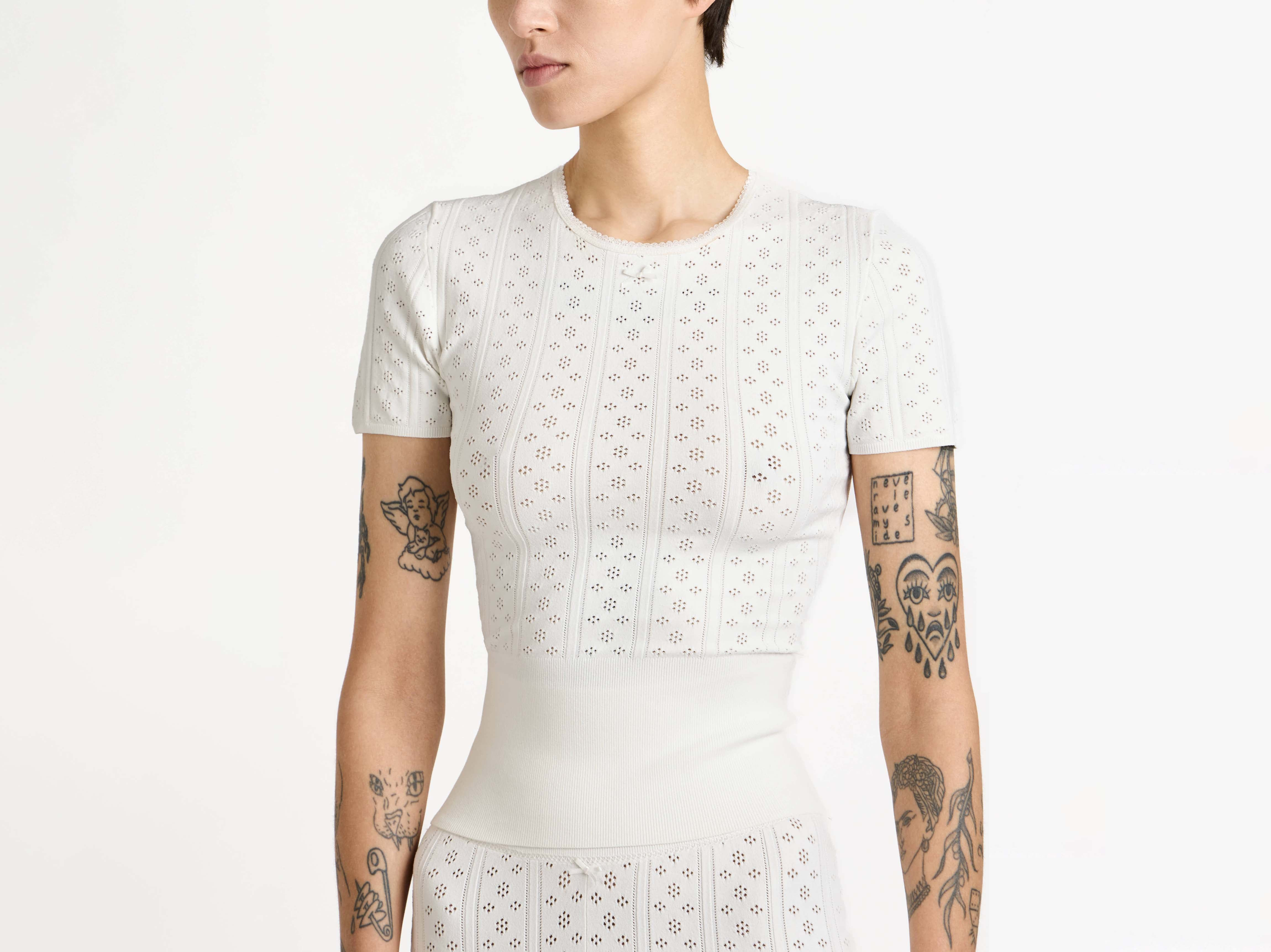 KNITTED POINTELLE T-SHIRT IN WHITE
