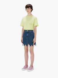 - Laser cut hem mini skirt - Mini skirt - Contrast tobacco topstitching - Anchor profile stitch on back patch pocket - Black logo embossed leather patch - Silver hardware - Fits true to size, take your normal size. Additional Information - Colour: Indigo - Composition: 100% Cotton - Stone wash - Soft hand feel - Made in Italy