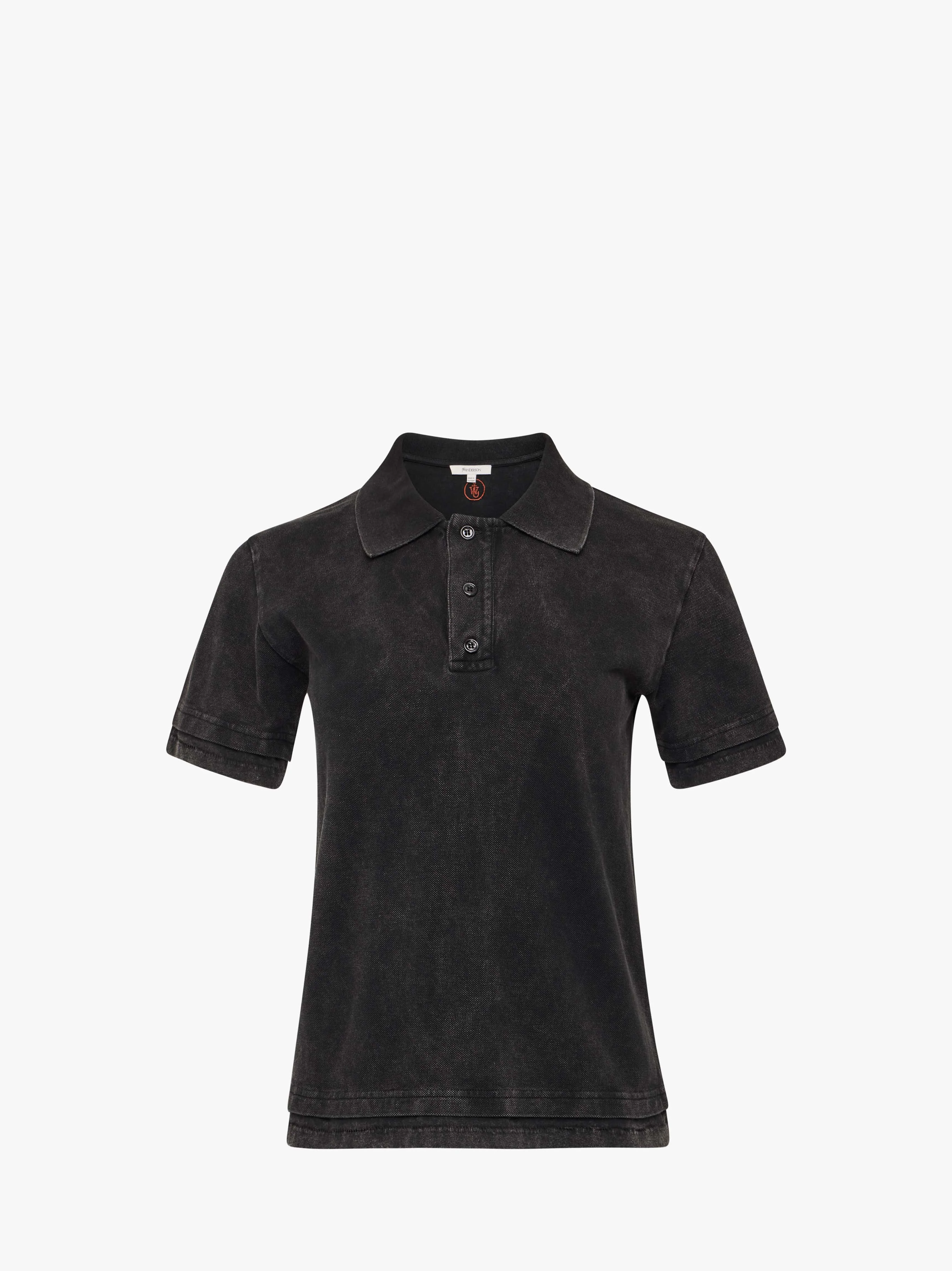 - Classic fit polo top complete with collar and button fastening - Tonal Buttons - Layered hem and cuffs - Contrast circular anchor embroidery at centre back - Unlined Details - Colour: Washed Black - Composition: 100% Organic Cotton - Natural stretch fabrication - Made in: Portugal - SKU: JO0277PG1808781 - Model Height: 178cm, Model Wearing Size: S