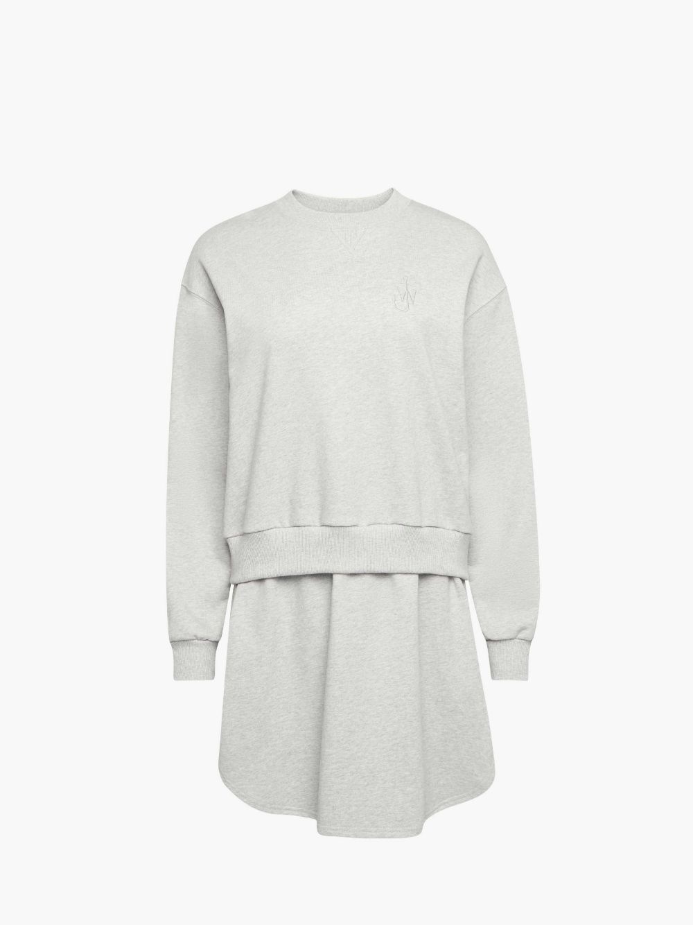 - Jersey sweatshirt dress, complete with layered detailing - Crew neckline - Dropped shoulders - Tonal anchor embroidery on chest - Curved skirt hemline - Relaxed fit, take your usual size Additional Information - Colour: Light Grey Melange - Composition: 100% Cotton - Heavy-weight fleece fabrication - Made in: Portugal - SKU: JD0044PG1719905