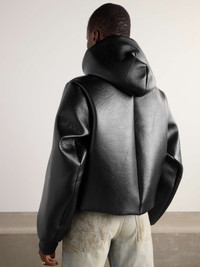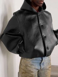 EDITORS'NOTES JW Anderson's cropped jacket is soft and sculptural all at once. Made from leather that's padded to enhance its shape, it has exaggerated sleeves, ribbed cuffs and an enveloping hood. SIZE & FIT Model measurements: - Fits true to size, take your normal size - Designed for a relaxed fit - Supple, non-stretchy leather - Model is 177cm/ 5'10" and is wearing a UK 8 - Bust: 80cm/ 31.5" - Waist: 60cm/ 23.5" - Hip: 89cm/ 35" DETAILS & CARE - Black leather - Button fastenings through front - 100% leather (Lamb); lining: 100% cotton - Dry clean