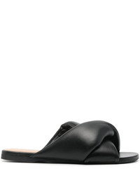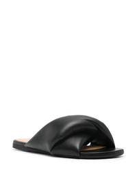 leather flat sandals Highlights - Black - Calf leather - Crossover strap detail - Twist detailing - Almond open toe - Branded leather insole - Flat rubber sole - Slip-on style Made in Italy Composition Leather 100% SIZE & FIT Measurement HEEL 0.59 in(1.5 cm)