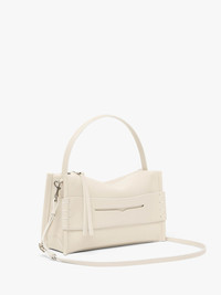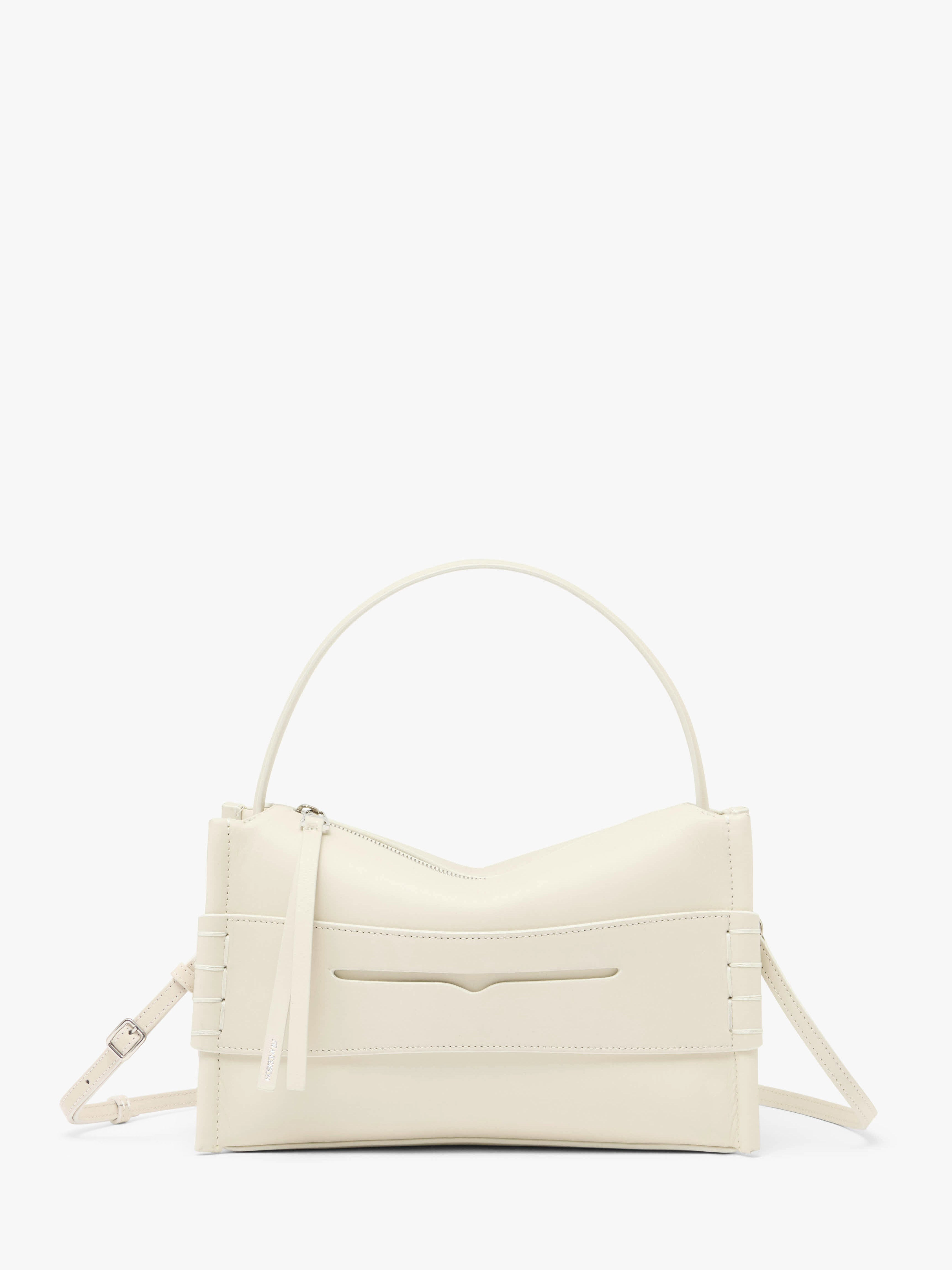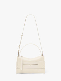 - Top handle bag with loafer inspired front panel complete with white topstitching - Detachable leather strap - Blind logo embossing on back panel - Top zip opening with branded puller - Inner leather pocket with blind logo embossing Additional Information - Colour: Off White - Dimensions: H: 20.5cm / W: 28.5cm / D: 10cm - Strap Drop: Adjustable: 46cm, 47cm, 48cm - Top Handle Drop: 13cm - Strap Length: 105cm - Outer: 100% Full grain calf leather - Lining: 100% Split grain calf leather - Hardware: 100% Zamak - Made in Italy