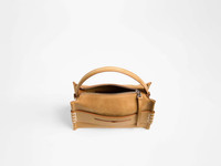Crafted in Italy. The Loafer Bag in gold waxed calf suede. The signature silhouette, a compact handbag with a top handle and adjustable crossbody strap. Features smooth calf leather detailing, with silver finish hardware. Every detail is carefully considered. The penny keeper, sewn by hand with box stitches, wrapping over four times, reminiscent of the shoe itself. The base mimics the sole of a loafer, stitching details reflect the welt of a shoe. Precisely cut, edge-painted and logo embossed leather is meticulously assembled, for a seamless fit. A study in elevated craftsmanship, grounded in function. Details - Colour: Gold - Composition [Main]: 80% Split Grain Calf Leather, 20% Full Grain Calf Leather - Composition [Lining]: 100% Lamb Leather - Composition [Hardware]: 100% Zamak - Measurements: [H] 17cm | [L] 29cm | [W] 8cm - Made in: Italy - SKU: HB0716LA0319120