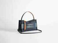 Crafted in Italy. The Loafer Bag in indigo Japanese denim with a calf leather base, strap and front band. The signature silhouette, a compact handbag with a top handle and adjustable crossbody strap. Features a wide zip opening, vegetable-tanned leather detailing, silver-finish hardware, and removable adjustable cross-body strap. Suede-lined with internal leather pocket. With denim crafted in Hiroshima, Japan, developed in collaboration with expert Japanese denim makers. Every detail is carefully considered. The penny keeper, sewn by hand with box stitches, wrapping over four times, reminiscent of the shoe itself. The base mimics the sole of a loafer, stitching details reflect the welt of a shoe. Precisely cut, edge-painted and logo embossed leather is meticulously assembled, for a seamless fit. A study in elevated craftsmanship, grounded in function. Details - Colour: Indigo - Composition [Main]: 80% Cotton, 20% Full Grain Calf Leather - Composition [Lining]: 100% Split Grain Calf Leather - Composition [Hardware]: 100% Zamak - Measurements: [H] 17cm | [L] 29cm | [W] 8cm - Made in: Italy - SKU: HB0716FA0495870