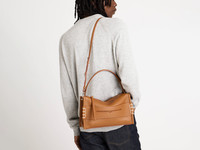 Crafted in Italy. The Loafer Bag in tan smooth calf leather. The signature silhouette; a compact handbag, features a top handle and adjustable crossbody strap, finished with silver finish hardware. Every detail is carefully considered. The penny keeper, sewn by hand with box stitches, wrapping over four times, reminiscent of the shoe itself. The base mimics the sole of a loafer, stitching details reflect the welt of a shoe. Precisely cut, edge-painted and logo embossed leather is meticulously assembled, for a seamless fit. A study in elevated craftsmanship, grounded in function. Details - Colour: Tan - Composition [Main]: 100% Full Grain Calf Leather - Composition [Lining]: 100% Split Grain Calf Leather - Composition [Hardware]: 100% Zamak - Measurements: [H] 17cm | [L] 29cm | [W] 8cm - Made in: Italy - SKU: HB0716LA0383640