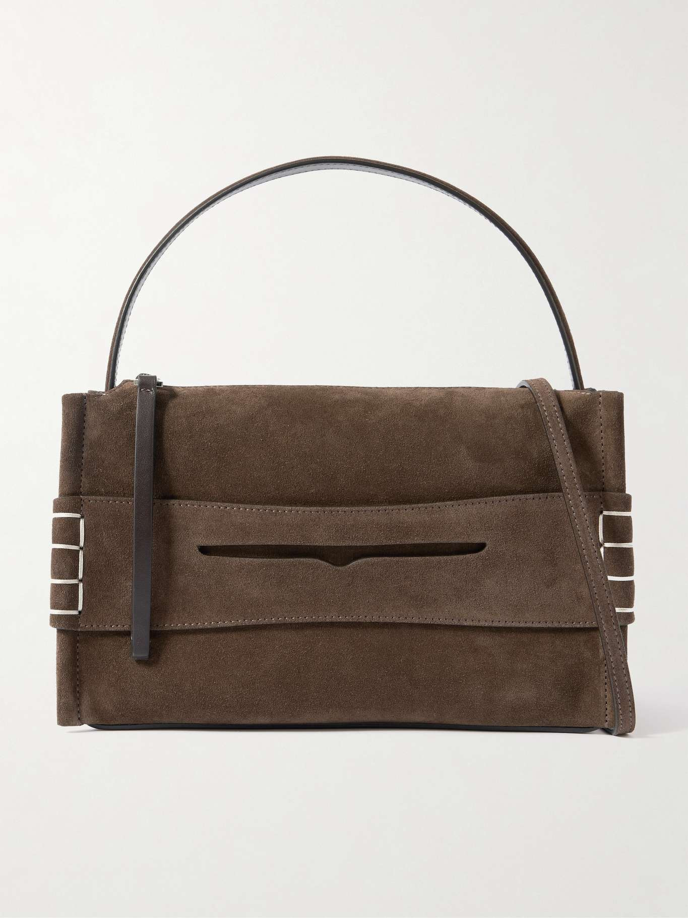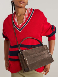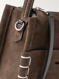 From the panelled construction to the contrasting stitches, JW Anderson's 'Loafer' shoulder bag offers playful nods to the classic shoes it's named after. Made from plush suede in a boxy shape, it has a slender detachable leather strap and is spacious enough to fit your diary, phone, keys and wallet. Details & Care - Brown suede and leather (Calf) - Top handle, detachable adjustable shoulder strap - Internal slip pocket - Fully lined - Zip fastening along top - Weighs approximately 1.5lbs/ 0.7kg
