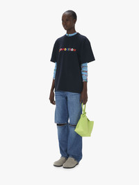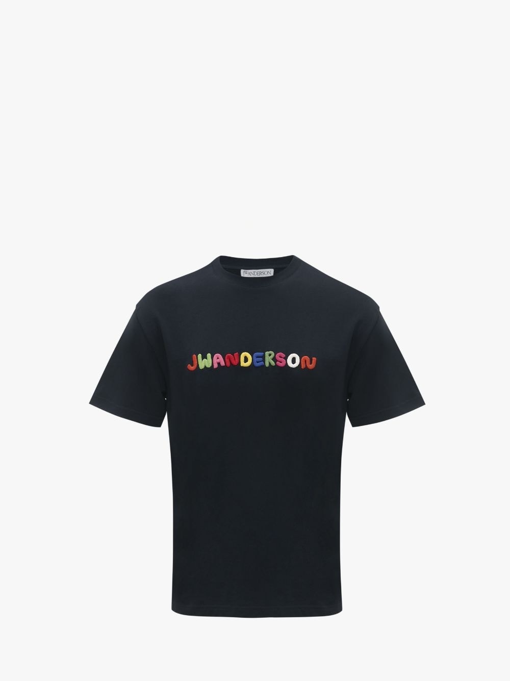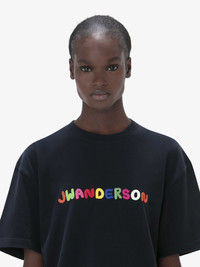 - Classic fit t-shirt - Multicolour JW Anderson logo embroidery on centre front - Unisex style, designed to be worn loose. Take your usual size, or 1-2 sizes down for a more regular fit. Additional Information - Colour: Navy - Composition: 100% Cotton - Made in Portugal