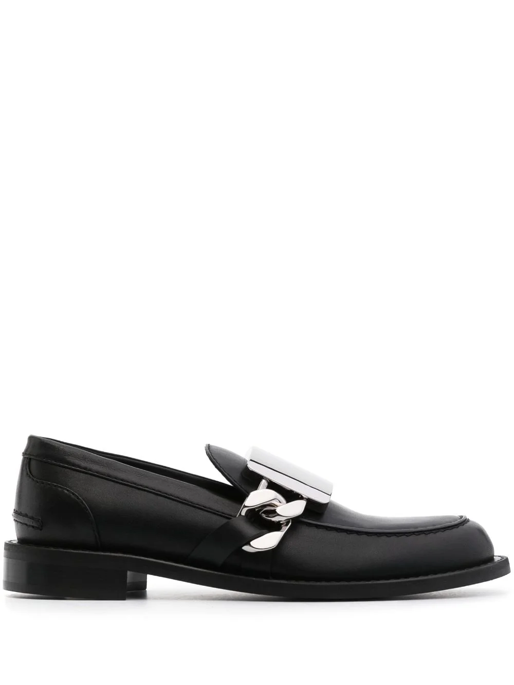logo-engraved leather loafers Highlights - Black - Calf leather - Logo-engraved silver-tone hardware - Cable-link chain - Round toe - Slip-on style - Branded insole - Flat rubber sole Made in Italy Composition Leather 100% SIZE & FIT Measurement HEEL 0.98 in(2.5 cm) Sole height 0.39 in(1 cm)