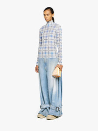LOGO GRID CHECK PRINT - SHEER LONG SLEEVE TOP