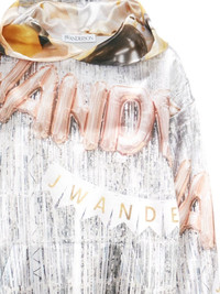 logo-print long-sleeve hoodie JW Anderson's signature innovative design style is showcased on this classic hoodie, through an all-over graphic print that depicts the brand's logo in balloons and as a banner. Imported Composition Polyester 100%