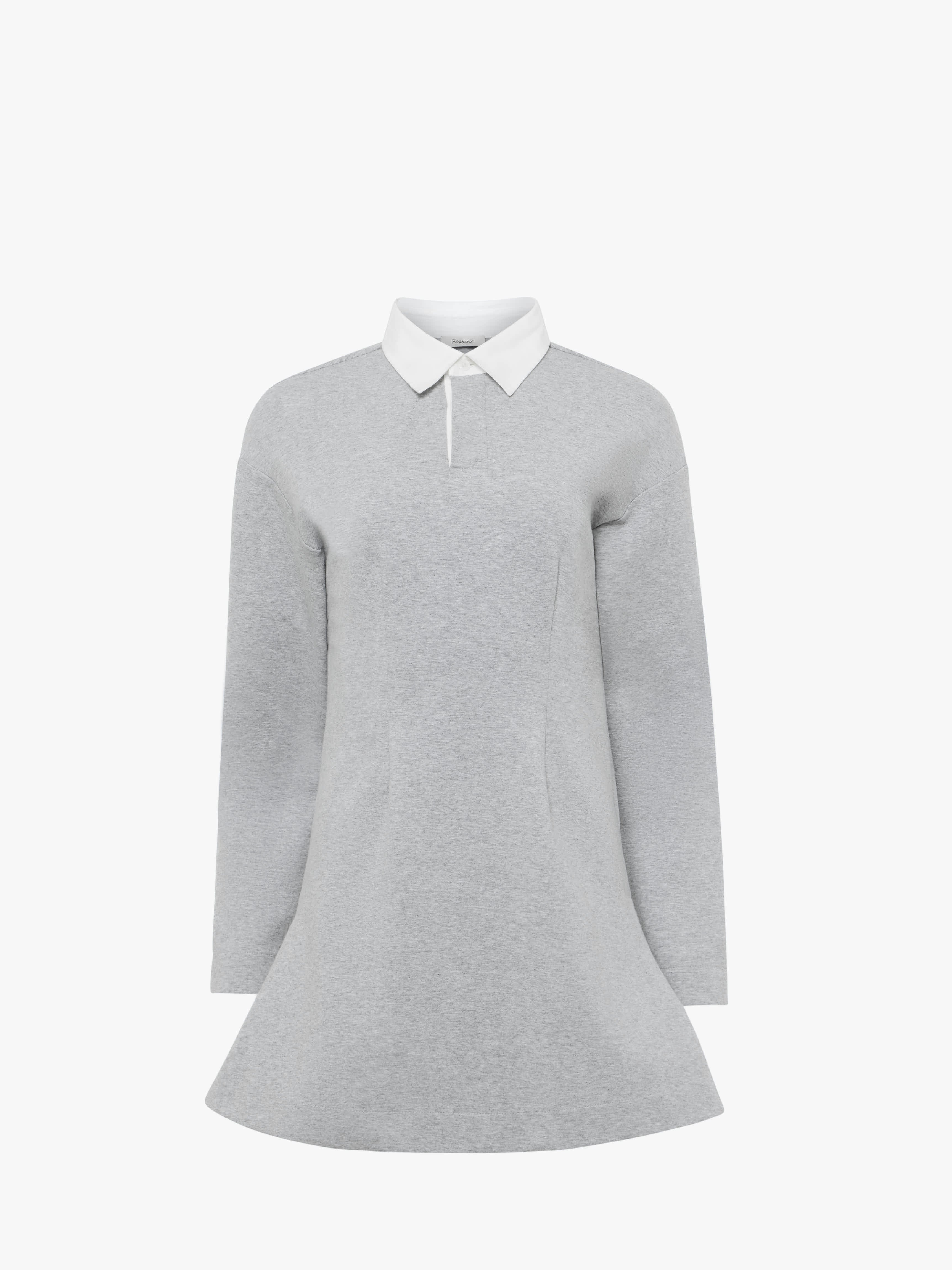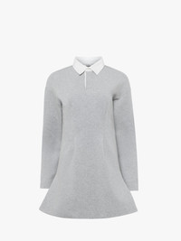 - Jersey polo dress complete with flared silhouette - Dropped shoulder - Contrast collar - Concealed button placket with visible top button - Front and back darts - Tonal logo embroidery at centre back - Unlined Details - Colour: Mid Grey Melange - Composition: 85% Organic Cotton, 8% Polyester, 7% Elastane - Natural compact stretch - Made in: Portugal - SKU: JD0047PG1845945