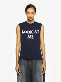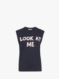 - Sleeveless jersey vest top with "Look at me" graphic - Crew neckline - Straight cut hemline - Relaxed fit, take your usual size Additional Information - Colour: Dark Navy - Composition: 100% Cotton - Mid-weight cotton -jersey fabrication - Made in: Portugal - SKU: JO0264PG1510898