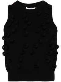 loop-detailing knitted tank top Highlights - Jet black - Cotton blend - Knitted construction - Decorative loop detailing - Crew neck - Sleeveless - Unlined - Ribbed hem Imported Composition Cotton 54%, Polyester 46% SIZE & FIT Model measurements Height 5 ft 11 in(1.8 m) Bust/Chest 32.67 in(83 cm) Hips 36.22 in(92 cm) Waist 24.4 in(62 cm) FittingInformation Designed for a slim fit that sits just away from the body offering a close yet comfortable fit The ribbed hem offers a close, comfortable fit Made with a midweight knit, this piece offers some stretch This piece fits true to size – take your usual size