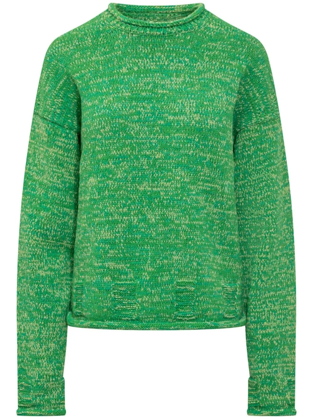marl-knit sweater Highlights - Green - Raw-cut edge - Crew neck - Long sleeves - Turn-up hem Imported Composition Cotton 51%, Polyamide 49%