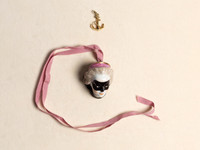 Porcelain mask in blackened metal, set with luminous glass paste eyes that capture an enigmatic, almost theatrical presence. The delicate porcelain contrasts with the darkened mount, evoking the mystery and allure of the masquerade. A striking work of craftsmanship, designed to blur the line between ornament and art object. Sourced by Will Martindale, Classical Gem Hunter, a curator of historical jewellery pieces, based in Mayfair. Will is drawn to pieces with an authentic sense of beauty; he believes jewellery is made to be worn, held and lived in. These pieces were selected by Jonathan Anderson, bridging the worlds of antiquity and fine craftsmanship. Details - Colour: White - Composition [Main]: Porcelain - Composition [Other]: Metal & Glass Paste - Made in: England - SKU: JY0280OT0097001
