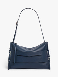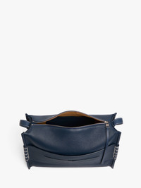 - Exclusively available on jwanderson.com - Adjustable suede and leather crossbody strap with white topstitching - Leather base - Loafer front panel with white topstitching detail - Blind logo embossing on back panel - Top zip opening with branded puller and leather tab - Silver hardware - Inner leather pocket with silver logo embossing - Suede lining - Can be worn crossbody or on the shoulder Details - Colour: Denim Blue - Dimensions: H: 27cm / W: 41cm / D: 18cm - Strap Drop: Long: 49cm / Medium: 47cm / Short: 26cm - Top Handle Drop: 13cm - Strap Length: 105cm - Outer: 80% Full deep grain leather, 20% Full grain calf leather - Lining: 100% Split grain calf leather - Hardware: 100% Zamak - Made in Italy - SKU: HB0749LA0377820