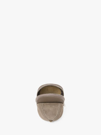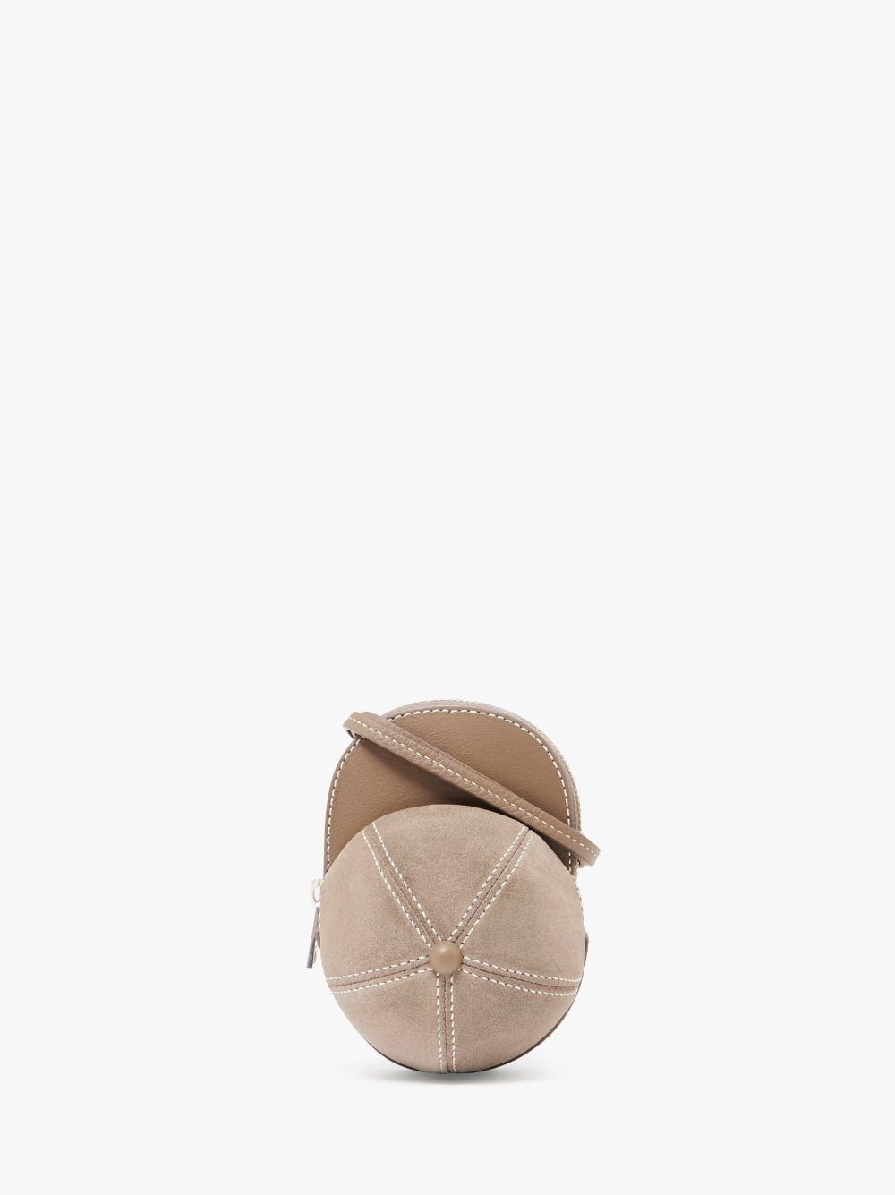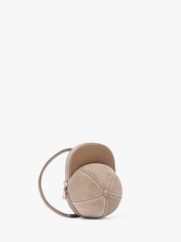 - Mini Crossbody Cap bag - Adjustable leather crossbody strap - Suede crown and calf leather body - Topstitching details - Silver tone hardware - Blind logo embossing on back panel - Zip opening with branded puller - Can be worn as a crossbody Details - Colour: Cobblestone - Dimensions H: 8cm / W: 13cm / D: 9.5cm - Strap Drop: Long: 50cm - Outer: 70% Full grain calf leather, 30% split grain calf suede - Lining: 100% Split grain calf suede - Hardware: 100% Zamak - Made in Hungary