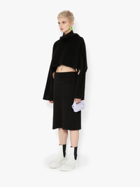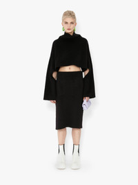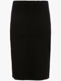 - Slim fit pencil skirt - Side slit - Black logo embossed leather patch - Fits true to size, take your normal size Details - Colour: Black - Composition: 44% Wool, 38% Mohair, 10% Polyamide - Made in Italy