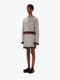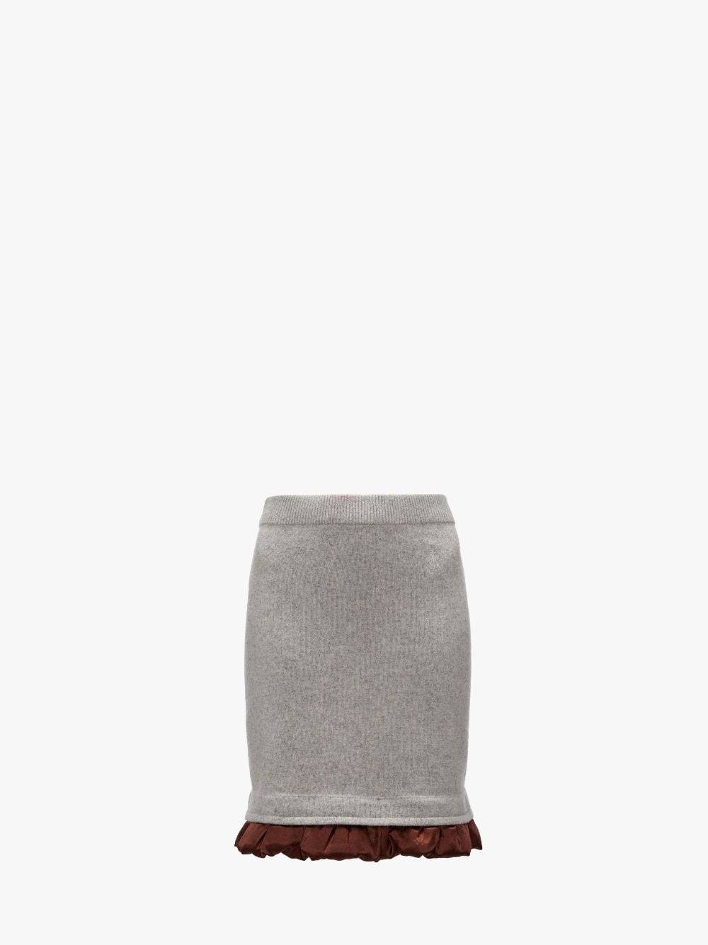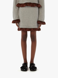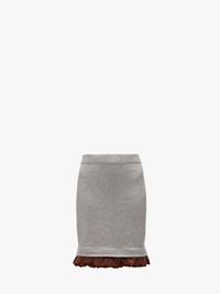 - Knitted mini skirt with satin trim details - Straight fit - High-rise waist - Contrast satin gathering on hemline and cuffs - Tonal signature anchor branded detailing - Fits true to size, take your normal size Additional Information - Colour: Light Grey - Composition - Main: 100% Merino Wool - Contrast: 100% Polyester - Made in China - Fine knit