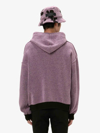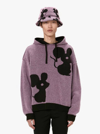 - Classic fit hoodie - Mouse intarsia graphic - Tubular hood detail - Dropped shoulder - Ribbed cuff and hem - Contrast inner hood - Unisex style - fits true to size, take your normal size. Additional Information - Colour: Lilac/Black - Composition: 80% Merino Wool 20% Polyamide, - Reverse 100% Polyester - Double face jacquard stitch - Mid weight - Made in China