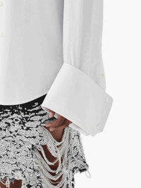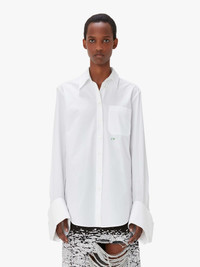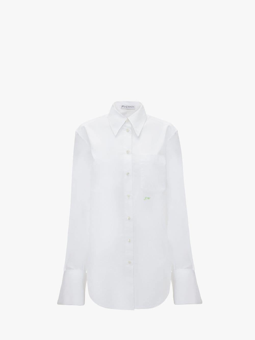 - Relaxed fit shirt - Dropped shoulder - Chest patch pocket - Oversized cuff - Back yoke and pleat - Curved hem - Green embroidered JW logo on centre front - Unlined - Designed to be worn loose. Take your usual size. Additional Information - Colour: White - Composition: 100% Cotton - Clean finish - Compact - Made in Poland