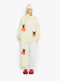 - Oversized knitted jumper - Boxy fit with crew neckline - Embroidered swan artwork - Ribbed hems - Tonal anchor embroidery on upper back neck - Oversized style, designed to be worn loose. Take your usual size. Details - Colour: Pale Yellow - Composition: 100% Merino Wool - Mid weight - Yarn from China