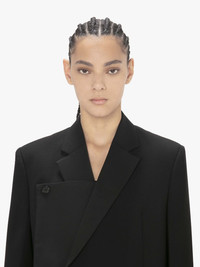 - Slim fitted silhouette double-breasted blazer - Contrast satin notched lapel - Flap pockets - Detachable layered panel detail - Sleeve crease - Tonal buttons - Fully lined - Fits true to size, take your normal size.