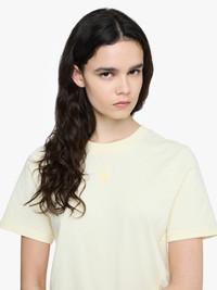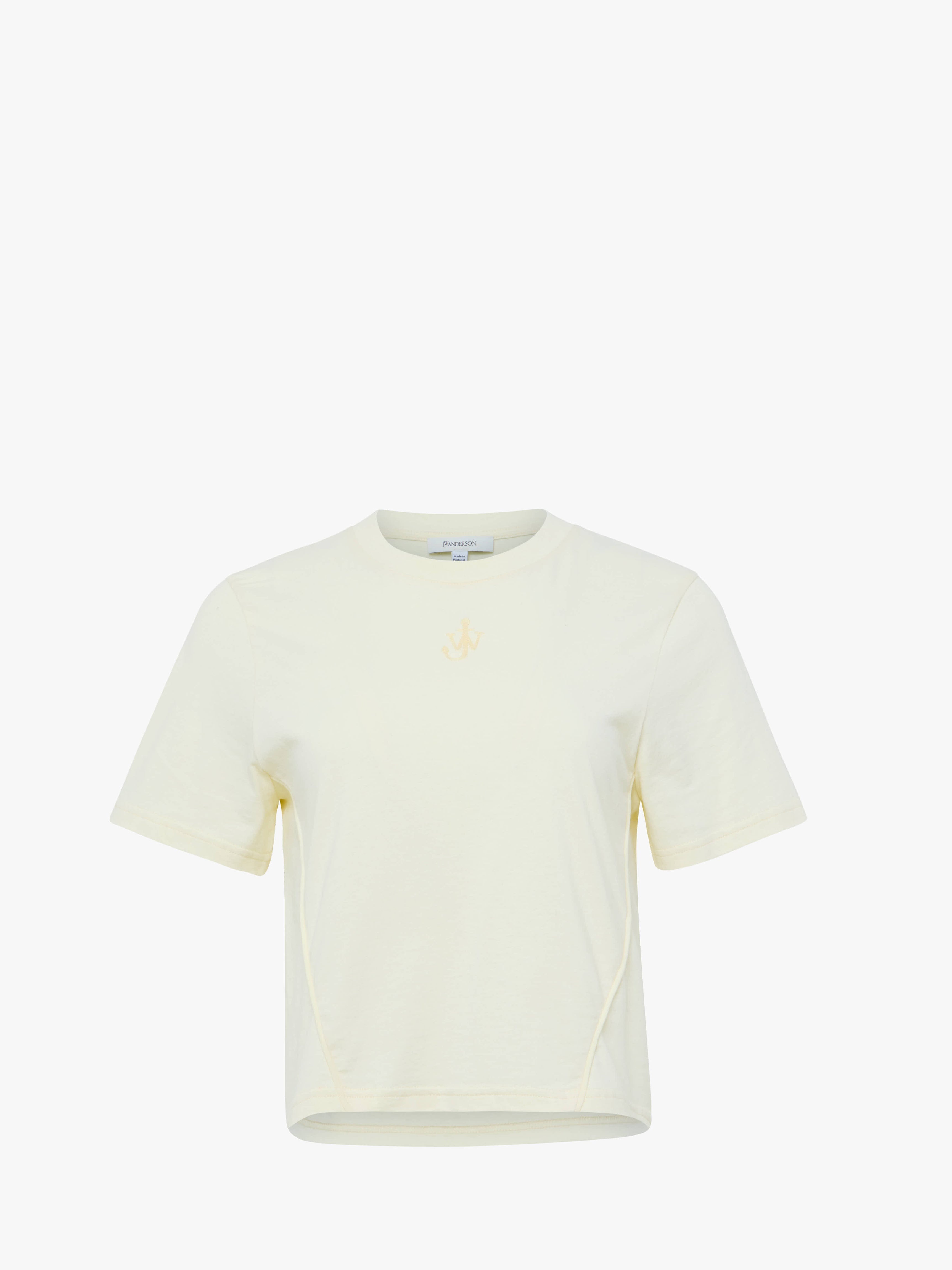 - Short sleeve T-shirt with contrasting anchor embroidery on centre front - Crew neckline - Cropped boxy fit - take your usual size Details - Colour: Buttermilk - Composition: 100% Cotton - Organic cotton - Natural stretch - Sleeve length: 39cm - Centre back length: 49.5cm - Made in: Portugal - SKU: JT0259PG1715215