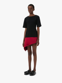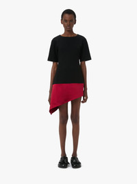 - Double crepe short sleeve dress with contrasting satin hem - Crew neckline - Raglan sleeve - Invisible centre back zip - Unlined - Fitted silhouette - take your usual size Additional Information - Colour: Black - Composition - Main: 56% Acetate, 44% Polyester - Heavy weight bonded crepe - Textured - Made in Bulgaria