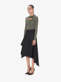 - Asymmetric seams - Patchwork construction - Draped sides - Asymmetric hem - Invisible side zip - Fits true to size, take your normal size.