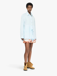 - Boxy fit shirt complete with a patchwork construction - Layered drape hem - Dropped shoulder - Yellow crockery embroidery on chest - Back pleat - Yellow circular anchor embroidery at the hem - Tonal buttons - Unlined Details - Colour: Pale Blue - Composition: 100% Cotton - Mid weight - Sleeve length: 86.5cm - Centre back length: 81.5cm - Made in: Bulgaria - SKU: SH0374PG1823806