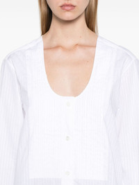 pintuck bib shirt Highlights - White - Cotton - Poplin texture - Pintuck bib detailing - Front button fastening - Pinstripe pattern - Scoop neck - Long sleeves with buttoned cuffs - Curved hem Imported Composition Cotton 100% SIZE & FIT Model measurements Height 5 ft 9 in(1.75 m) Bust/Chest 31.88 in(81 cm) Hips 34.64 in(88 cm) Waist 24.01 in(61 cm) FittingInformation Designed to be unstructured, offering a loose fit throughout Made from a midweight non-stretch fabric