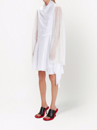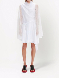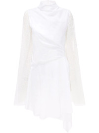 sheer-sleeve asymmetric dress JW Anderson infuses this clean white dress with an ethereal tone in its asymmetric draped design and embroidered sheer sleeves. Highlights - White - Tencel™ blend - Mock neck - Embroidered design - Long sheer sleeves - Draped design - Asymmetric design - Thigh-length Imported Composition TENCEL™ 84%, Polyester 16%