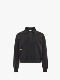 - Cropped fit polo sweatshirt complete with all-over garment dye effect - Dropped shoulders - Tonal buttons - Contrast crockery embroidery on front side - Contrast logo embroidery at centre back - Ribbed hem and cuffs - Unlined Details - Colour: Washed Black - Composition: 100% Cotton - Natural stretch - Soft handfeel - Made in: Portugal - SKU: JW0243PG1843781
