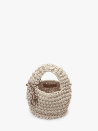 - Knitted cotton basket bag - Removable and adjustable leather crossbody strap - Leather hanging anchor charm - Unlined - Gold tone hardware - Can be worn crossbody or on the shoulder
