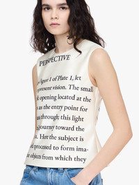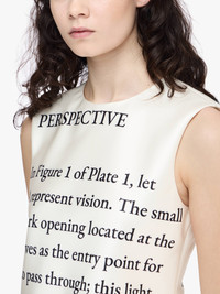 - Sleeveless bias top with all-over text print - Crew neckline - Concealed zip closure at centre back - Unlined - Fitted silhouette, take your usual size Details - Colour: Ivory - Composition: 100% Polyester - Lining: 100% Viscose - Printed Duchesse Fabrication - Made in: Poland - SKU: TP0356PG1784006