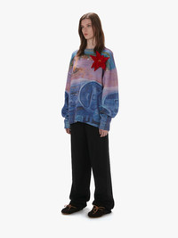 - Oversized fine-knit sweater with abstract print - Relaxed fit and dropped shoulder design - Curved sleeve - Digital all over camper print - Ribbed crew-neckline, cuff and hem - Tonal signature anchor branding emboidered on sleeve - Oversized style take your usual size Additional Information - Colour: Cornflower Blue - Composition - Main: 80% Wool, 20% Polyamide - Made in China