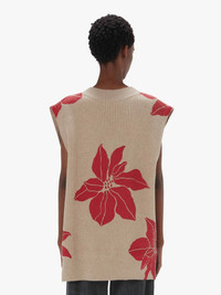 - V neckline vest with rubberized Poinsettia print - Side slits - Boxy fit - take your usual size Additional Information - Colour: Oatmeal - Composition - Main: 96% Merino wool, 3% Polyamide, 1% Elastane - Heavy weight - Made in China