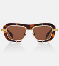 JW Anderson looks straight to the future with these unique sunglasses. Crafted with a tortoiseshell exterior enclosing gold-toned metal frames, the rectangular silhouette is finished with adjustable nose pads for a comfortable fit. Product Details - Frame material: acetate, stainless steel - Frame color: gold, brown - Lens filter category 2 - Color: brown - Lens color: brown - Handmade in China - Includes: case and presentation box, cleaning cloth - The color of the case may vary - Item number: P01137534 Size & Fit - Lens width: 49mm-1.95" - Bridge size: 18mm-0.7" - Earpiece length: 140mm-5.5"