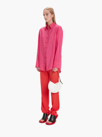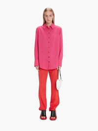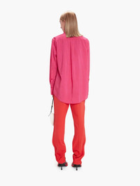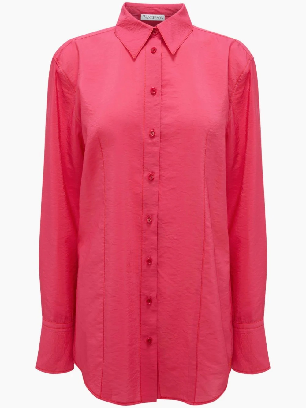 - Relaxed fit - Dropped shoulder - Low armhole and back yoke - Curved back hem - Contrast top stitching - Anchor logo embroidery on cuff - Mop buttons - Unlined Details - Colour: Fuchsia - Composition: 80% Viscose, 20% Polyamide - Compact, washed hand - Textured finish - Lightweight - Fabric from Italy