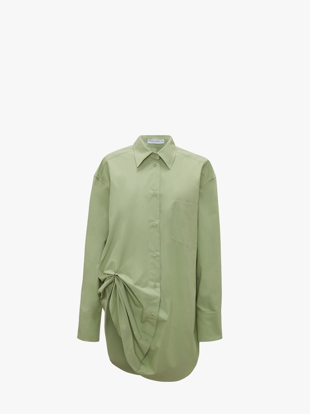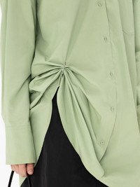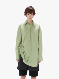- Boxy fit shirt - Dropped shoulders - Chest patch pocket - Adjustable rushed hem tacked at centre front bottom - Detachable silver ring - Tonal anchor embroidery on upper back - Fits true to size, take your normal size.