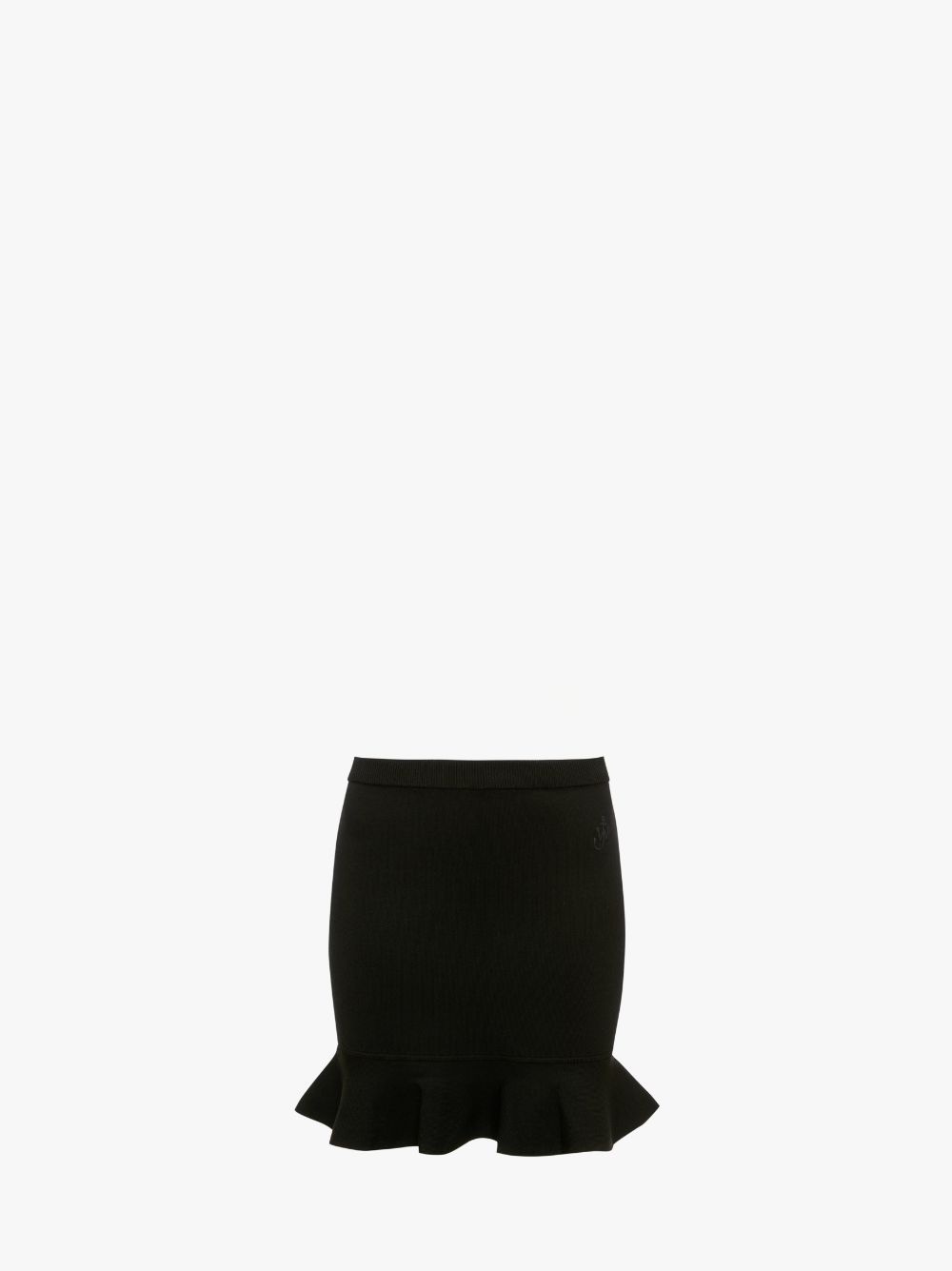 - Slim fitted knitted mini skirt - Frilled hem - Solid waistband - Tonal anchor logo on upper front side - Fits true to size, take your normal size.