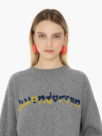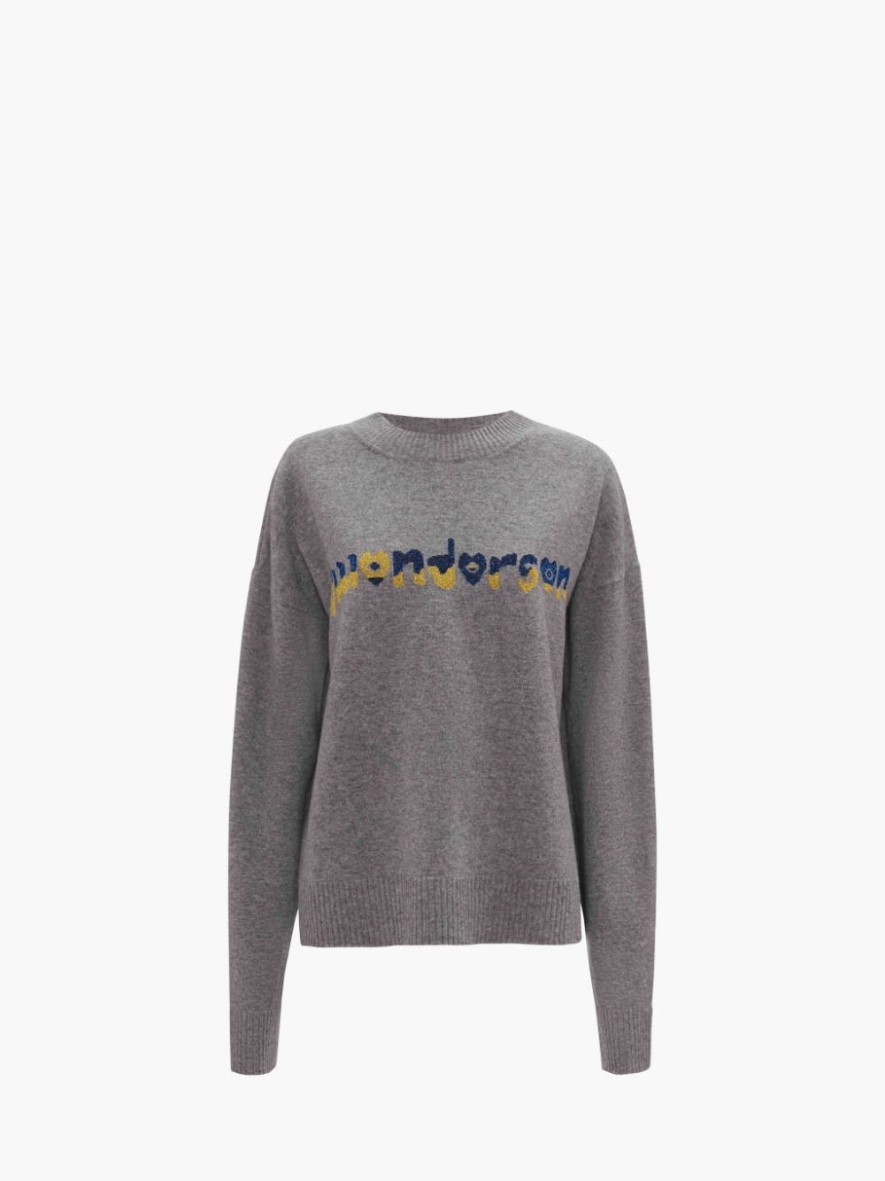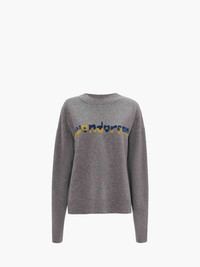 - Crew neck jumper with logo motif - Relaxed fit - Run Hany inspired intarsia logo on front panel - Ribbed hem - Fits true to size, take your normal size Details - Colour: Grey Melange - Composition: 100% Merino Wool - Made in China
