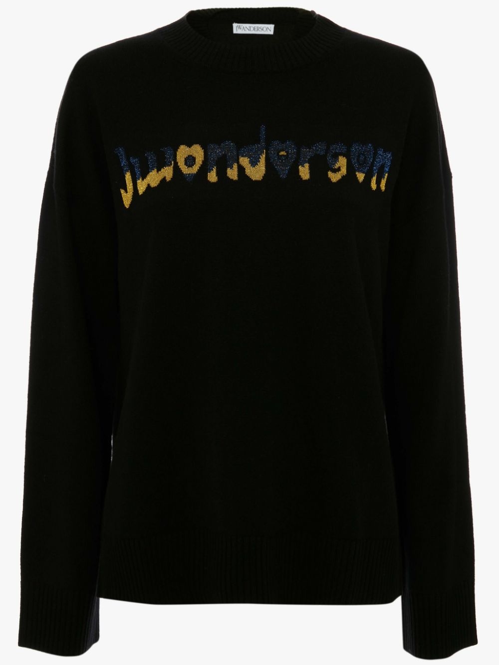 - Crew neck jumper with logo motif - Relaxed fit - Run Hany inspired intarsia logo on front panel - Ribbed hem - Fits true to size, take your normal size Details - Colour: Black - Composition: 100% Merino Wool - Made in China