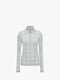 - Long sleeve top complete with signature logo-grid - High-neckline - Semi-sheer quality - Digital all over print - Fitted silhouette - take your usual size Additional Information - Colour: Off White - Composition - Main: 100% Recycled Polyester - Made in Portugal